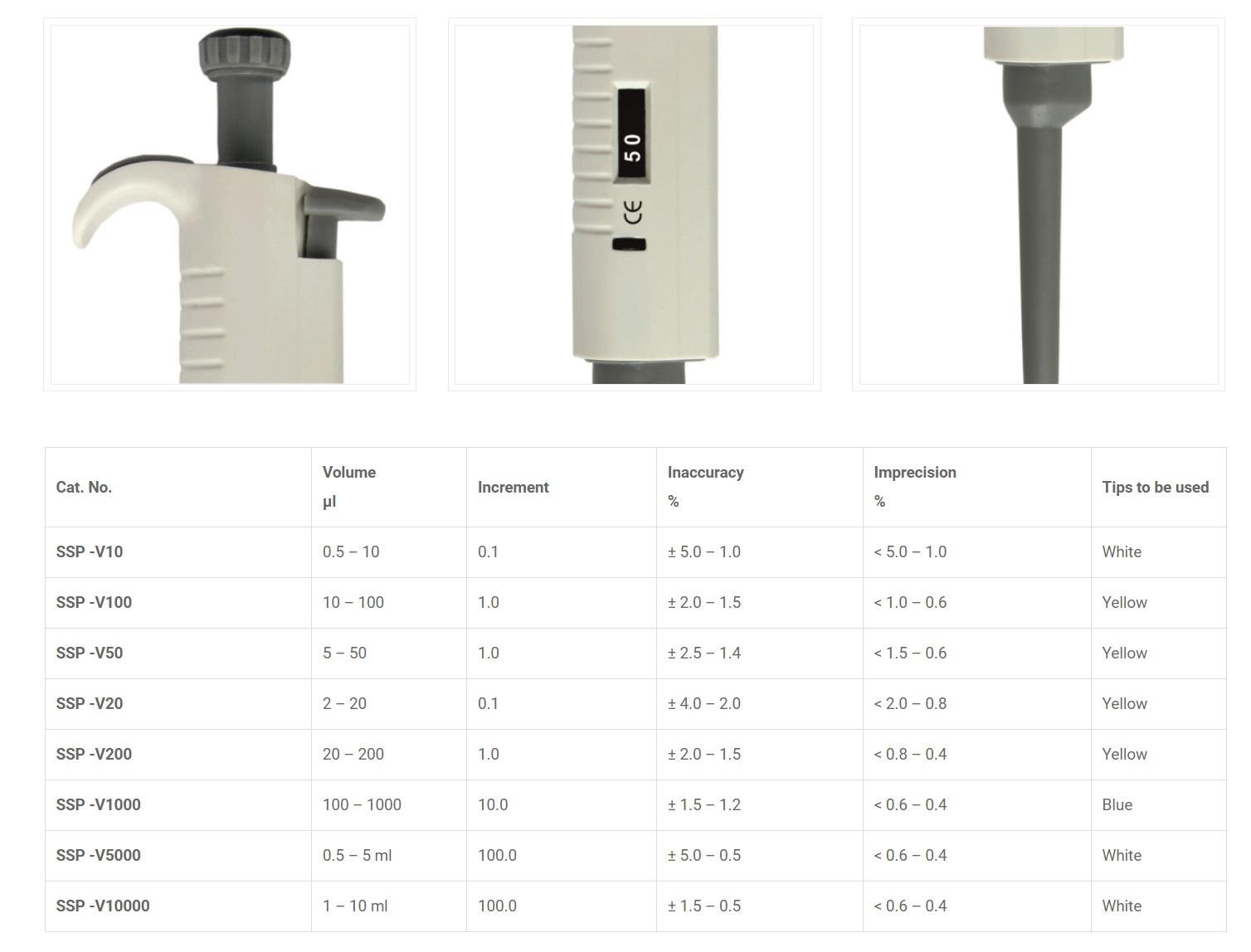 Salient Features of Adjustable Volume Micropipettes with Autoclavable Tip Cone: –